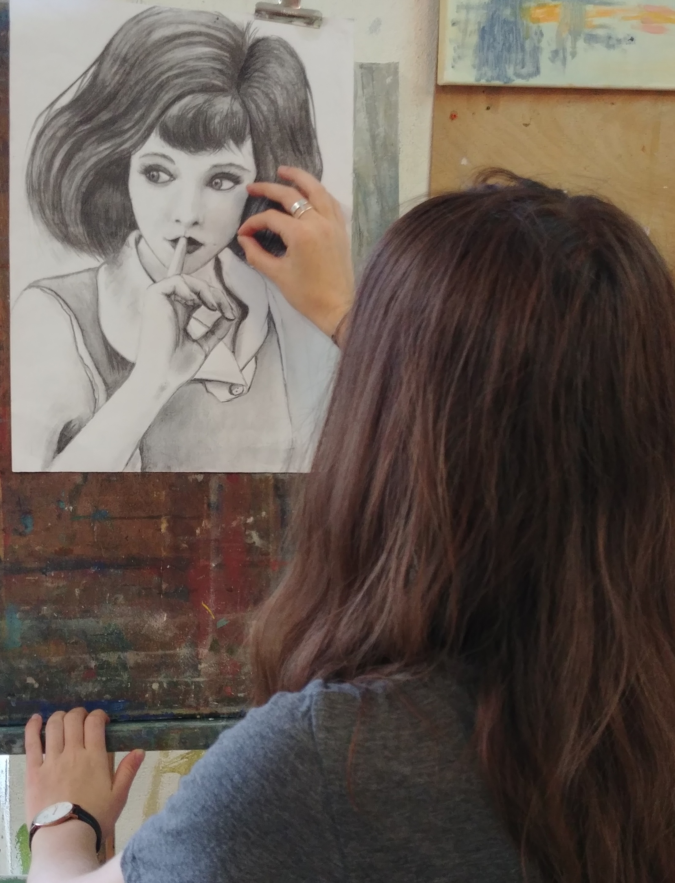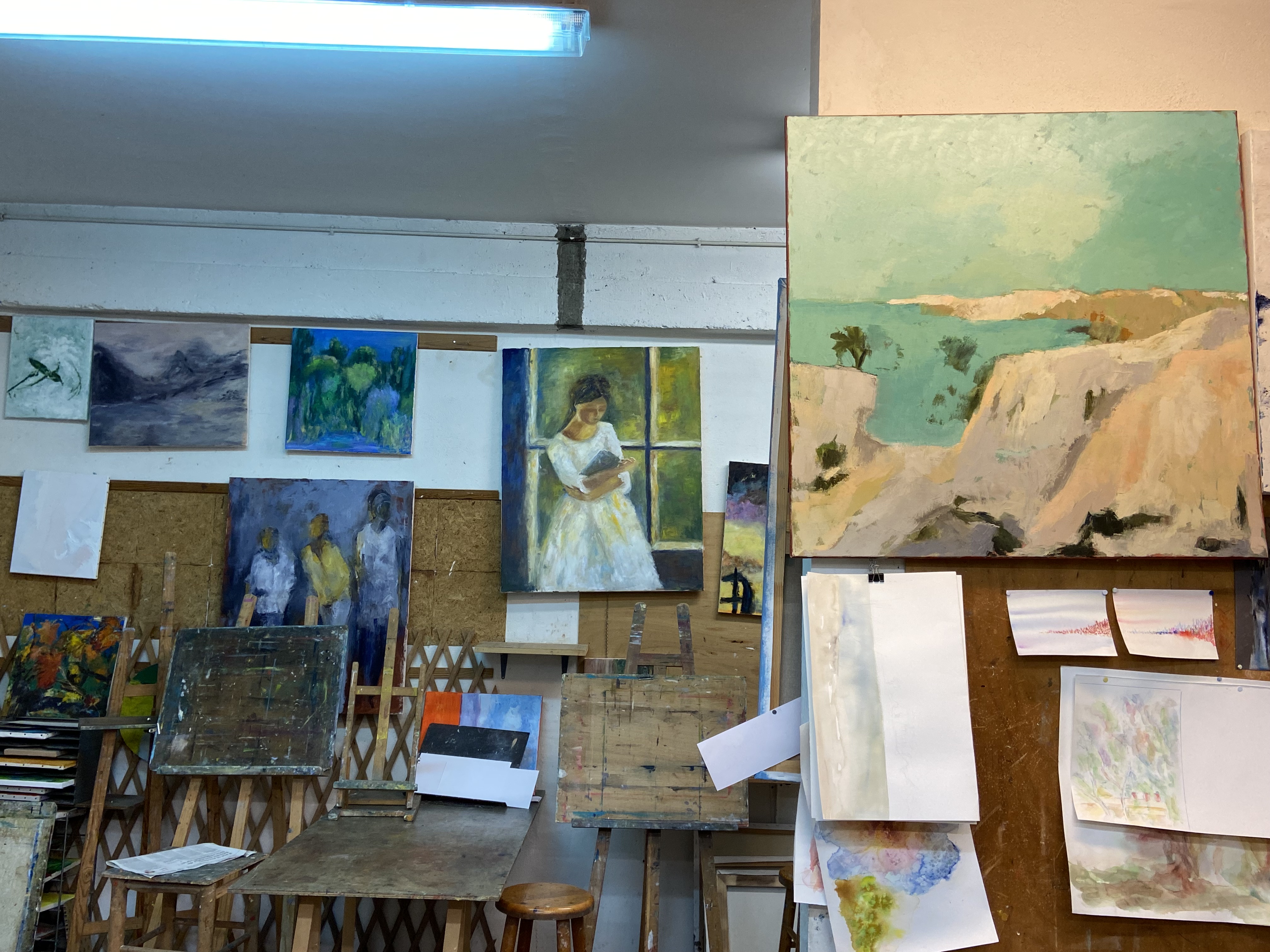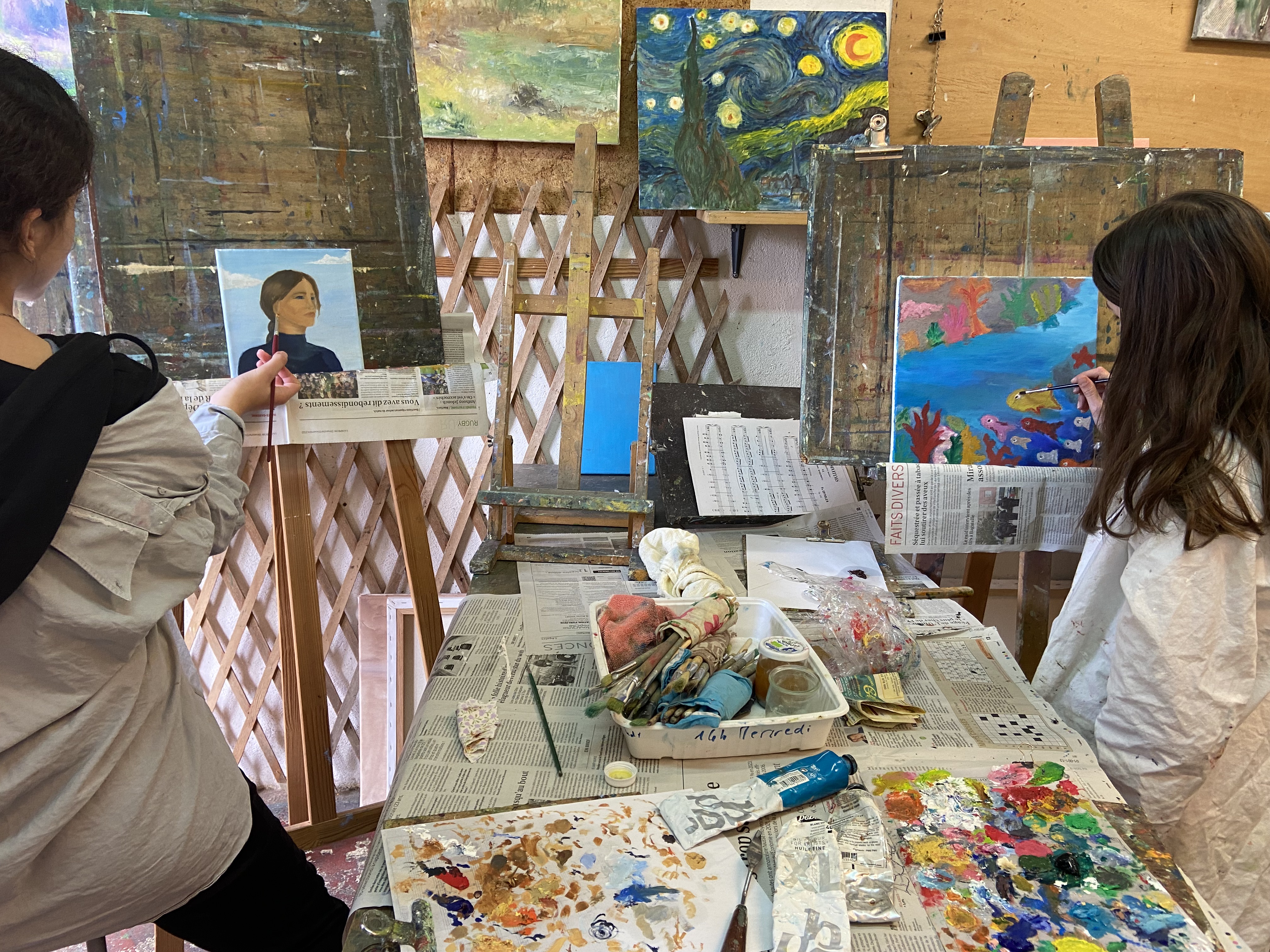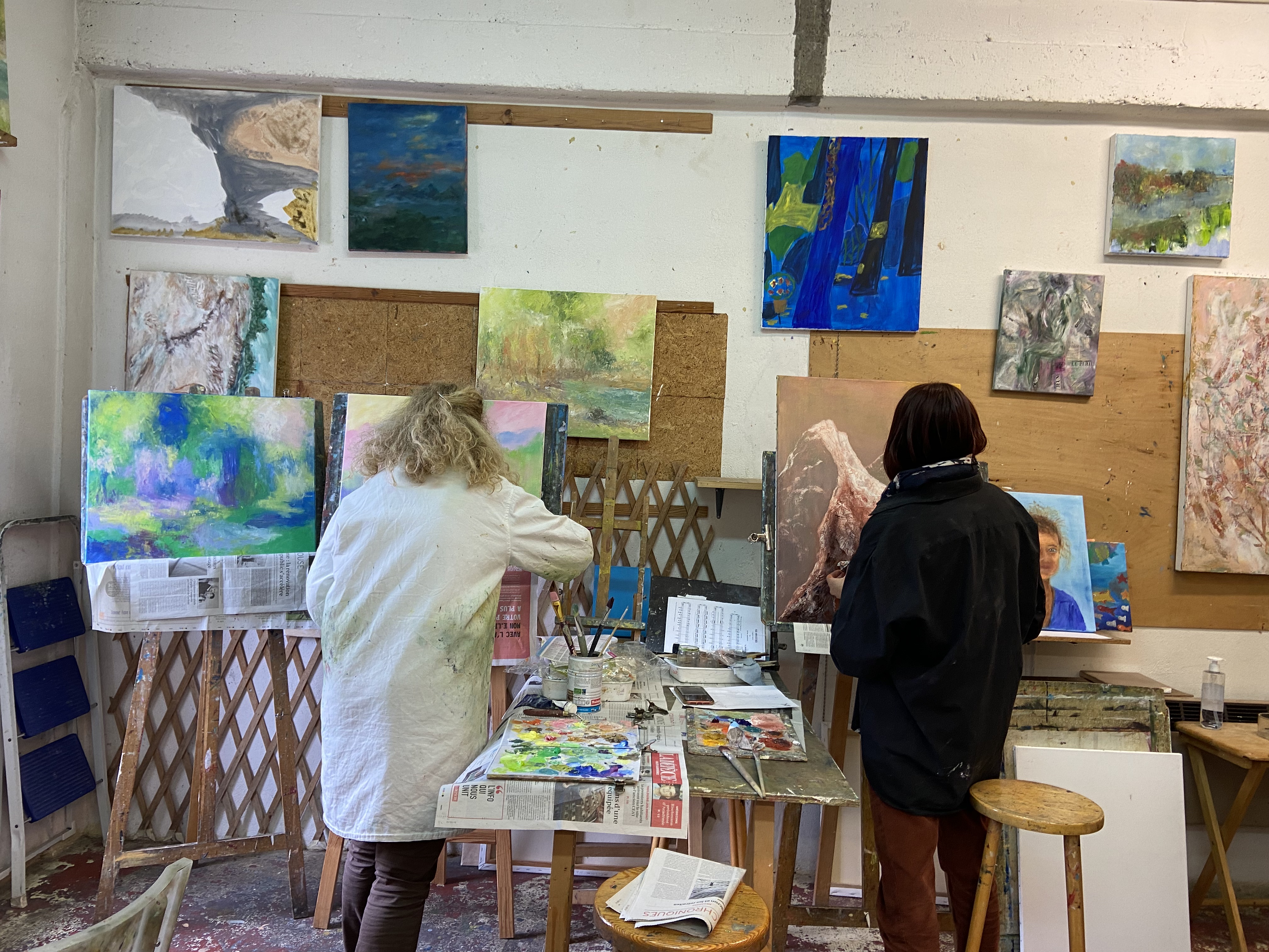 Sur les murs, on voit les œuvres en cours qui évoluent d’une semaine à l’autre.