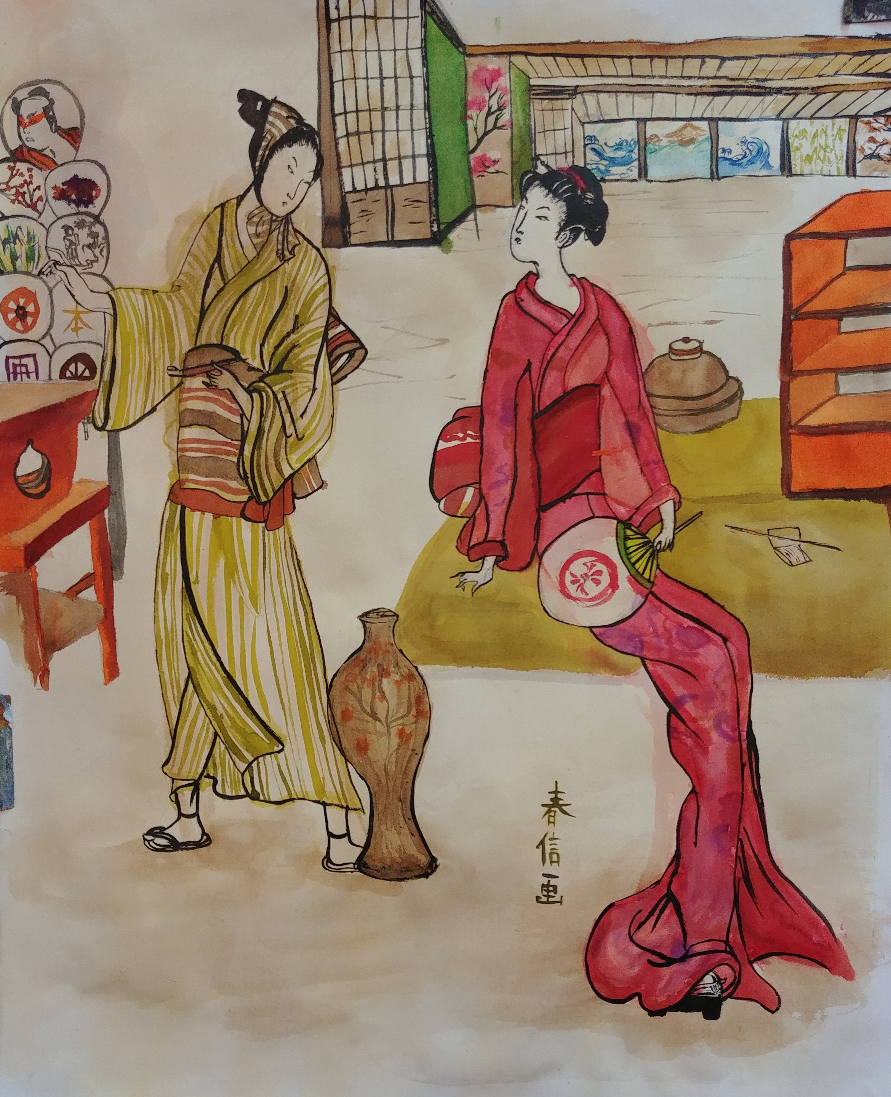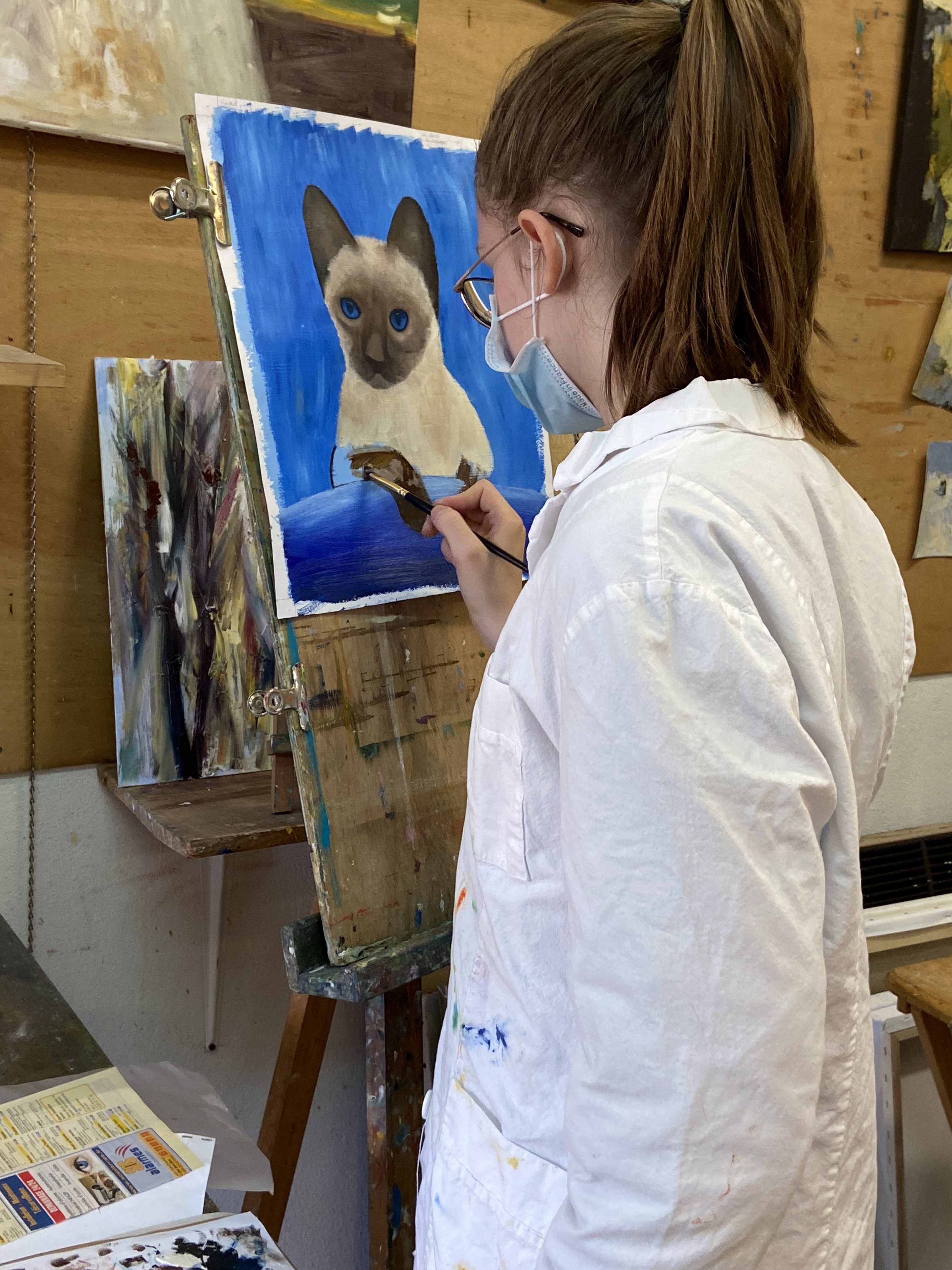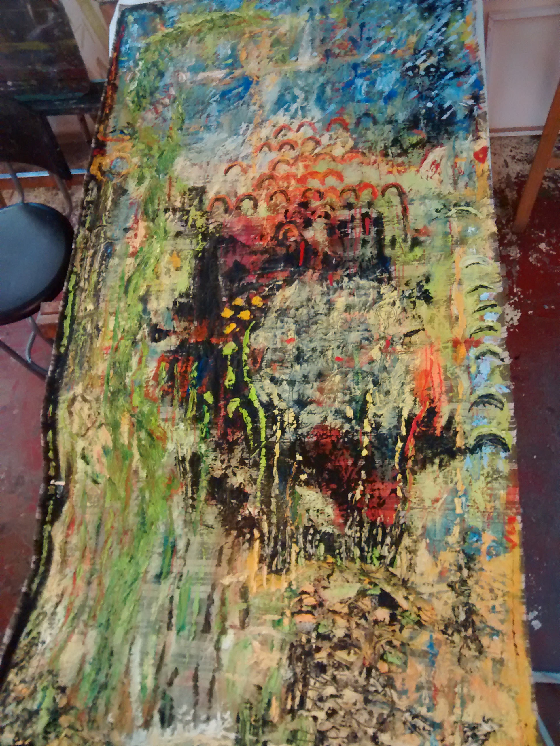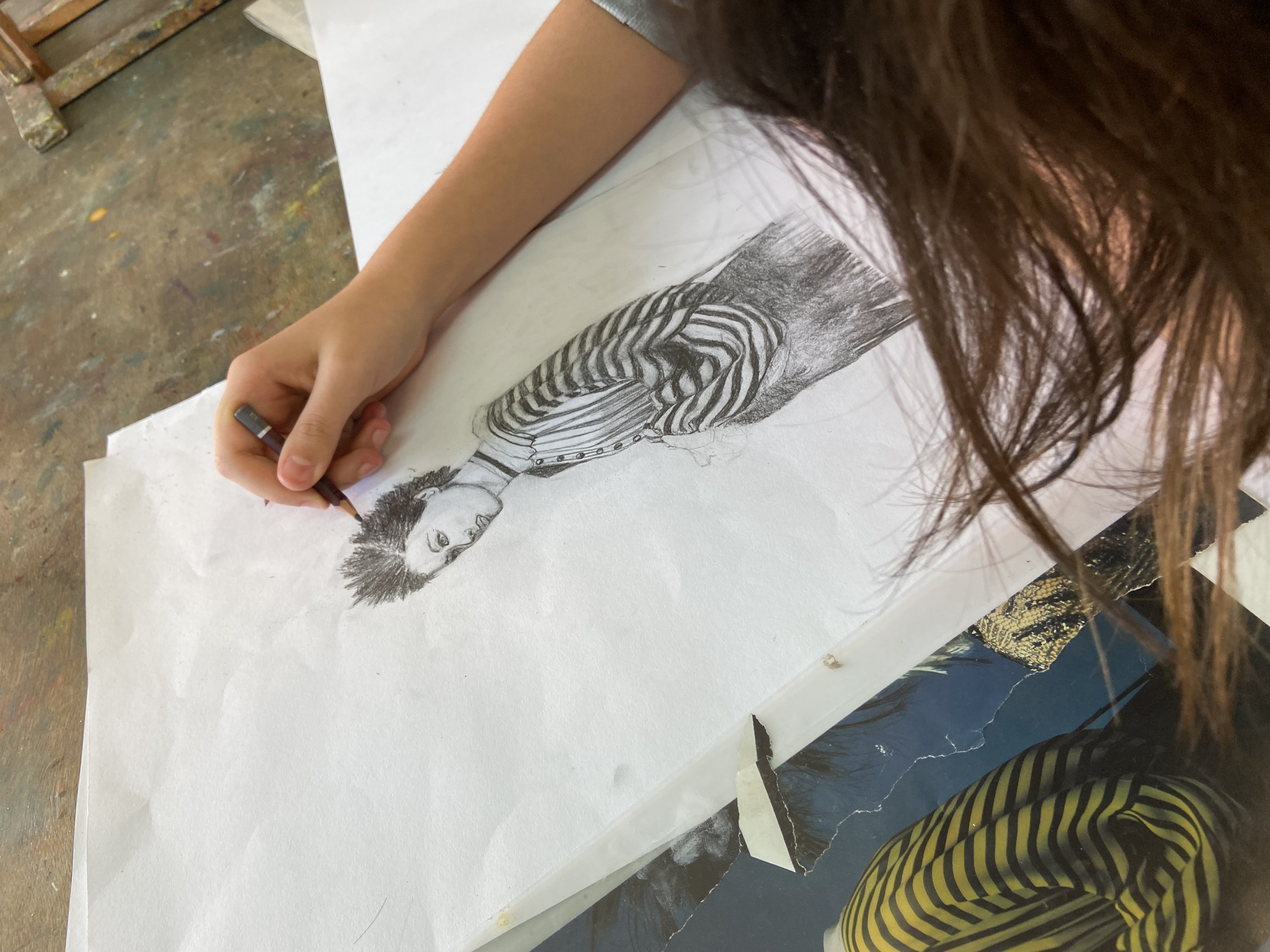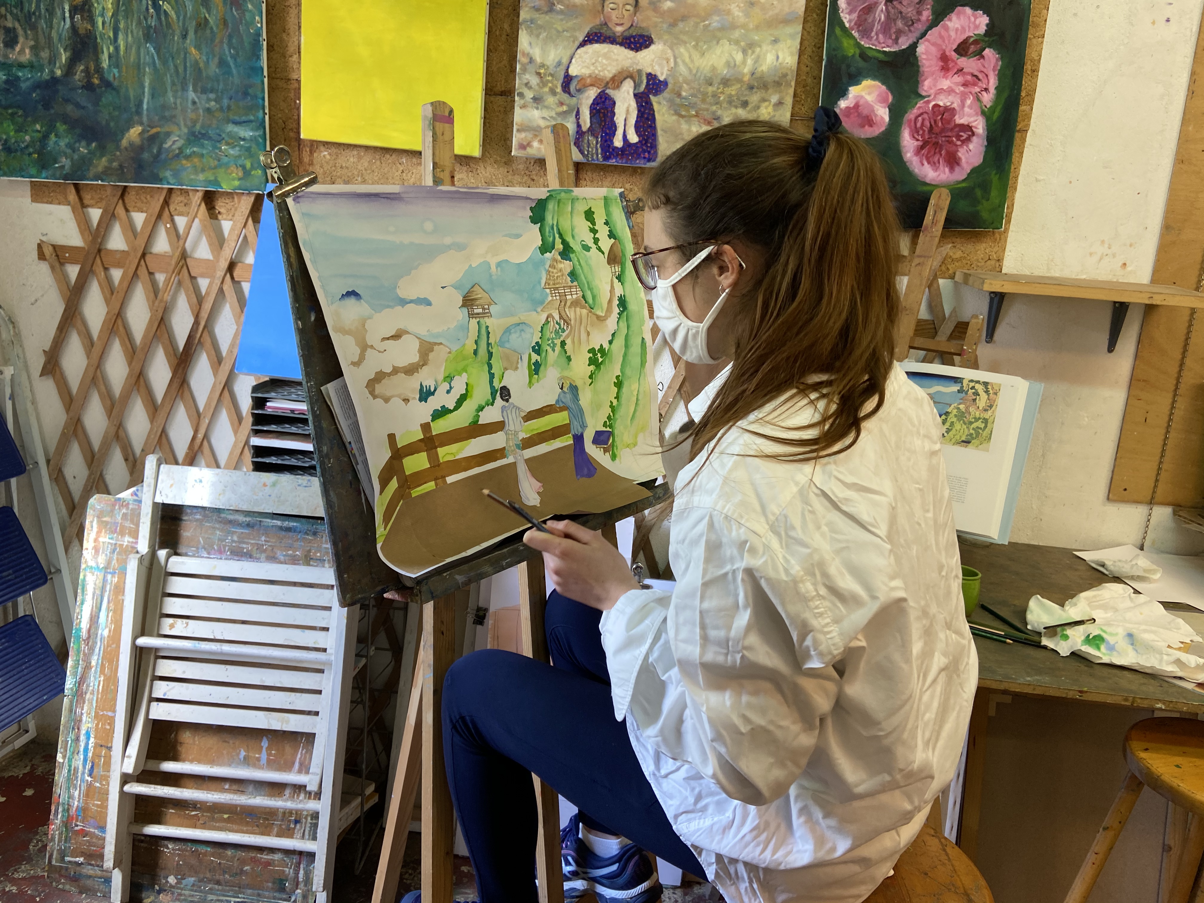 Sur les murs, on voit les œuvres en cours qui évoluent d’une semaine à l’autre.